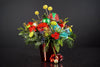 This arrangement is inspired by the whimsical and colourful patterns of ugly Christmas sweaters incorporated into a festive display!