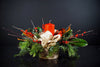 This cosy winter cabin arrangement evokes a warm rustic feel to capture the cosy charm of a winter cabin retreat. The perfect table piece for the holidays.